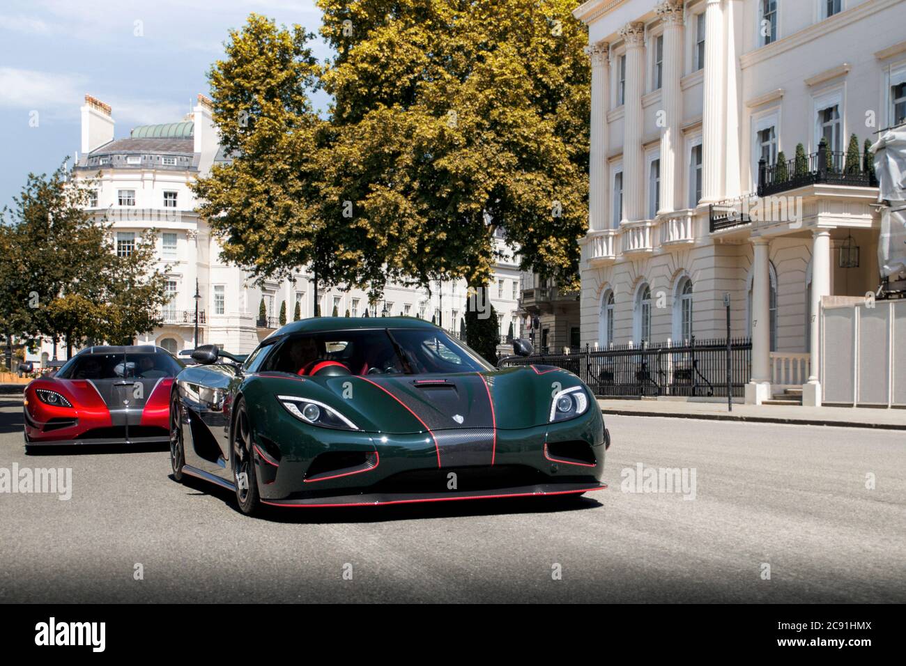 Green Koenigsegg Agera R Und Red Agera Rs Moderne Supersportwagen In Belgravia Im Zentrum Von London Gefahren Stockfotografie Alamy