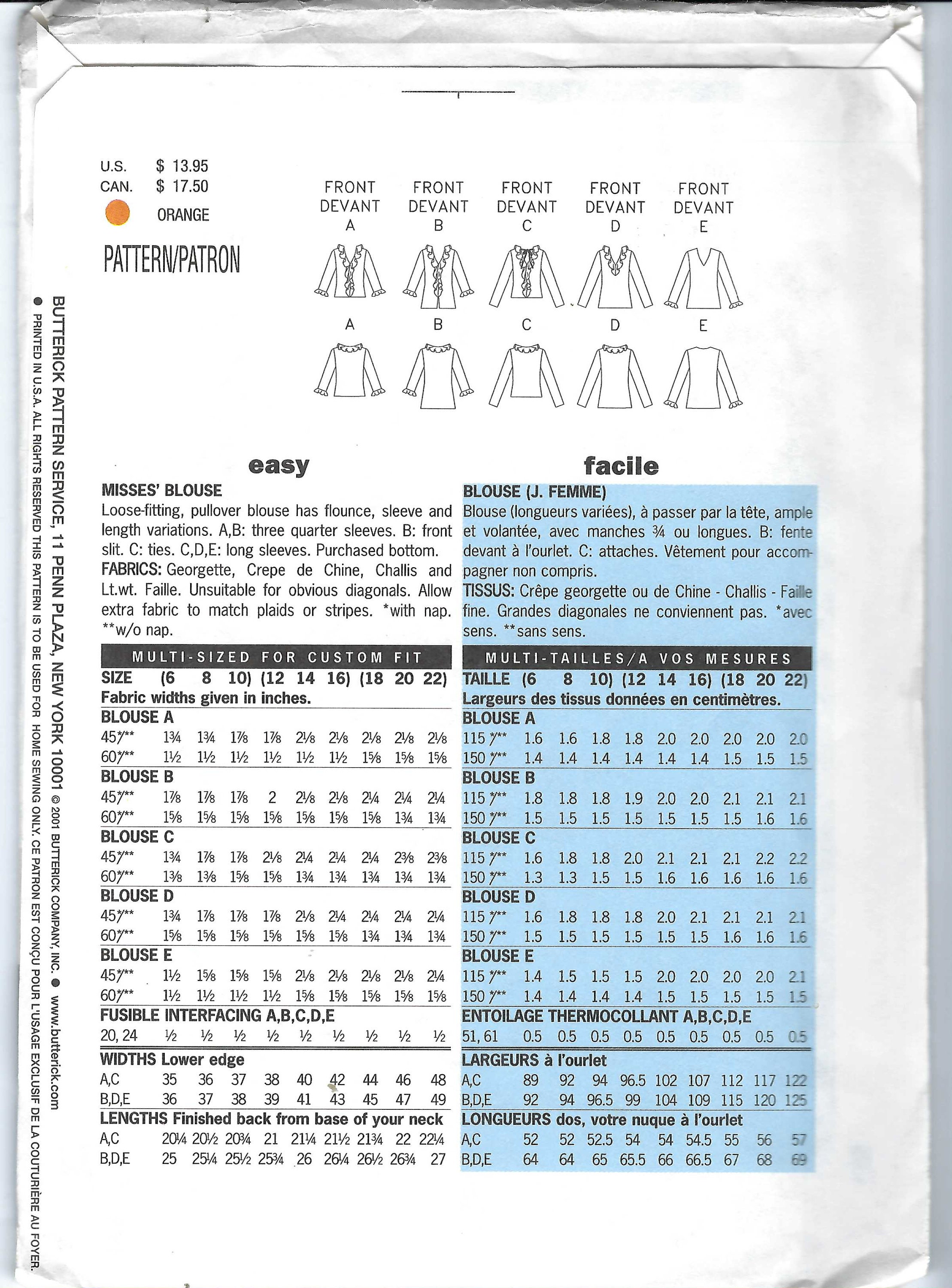 Uncut Butterick Sewing Pattern 3221 Top Misses Sizes Etsy